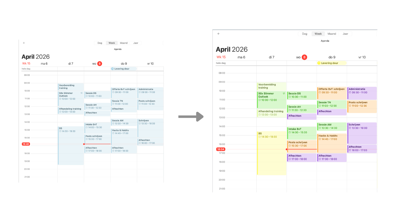 Alles wat je leert in de online sessies is praktisch en direct toepasbaar. Je leert slimmer omgaan met de tools die je al gebruikt – Outlook, Gmail of de Mac tools – en merkt meteen het verschil.