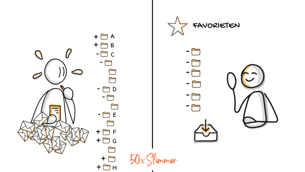 Die simpele, vaak genegeerde plek linksboven waar je je belangrijkste mappen kunt parkeren. Je vindt de Favorieten in zowel Outlook als in Mac Mail.